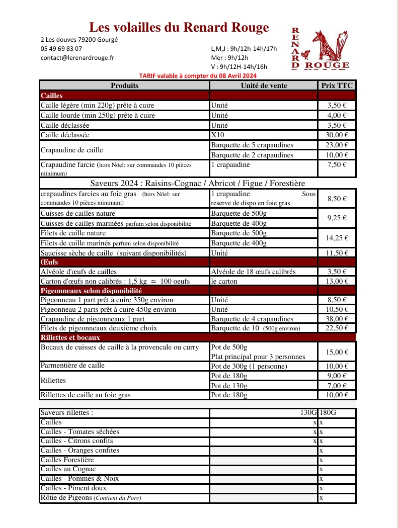 Naviguez sur les différents produits: cailles, pigeons, oeufs de cailles, rillettes ..... faites-vous plaisir !